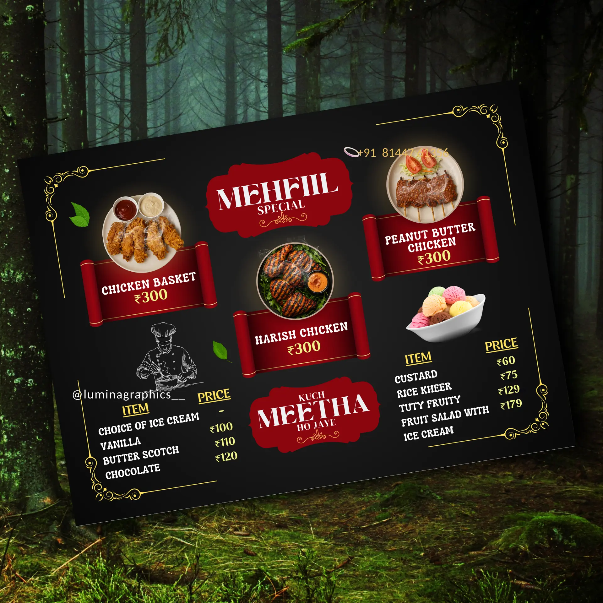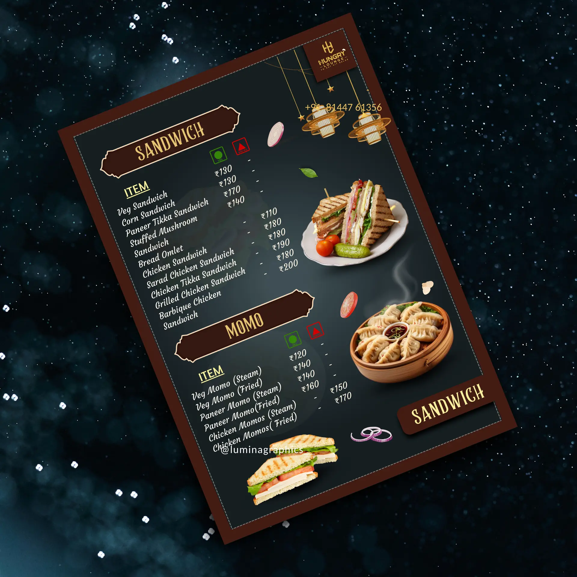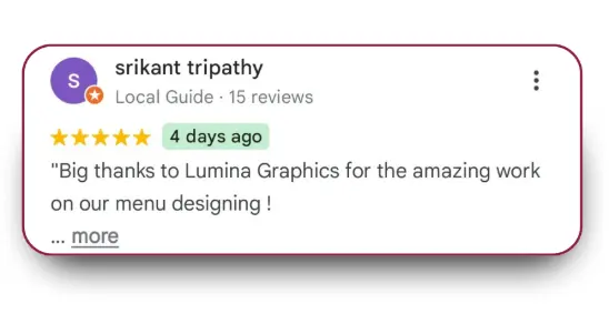 Each project featured below is an original design created by Lumina Graphics with attention to layout, hierarchy, print precision & based on the restaurant need & theme for modern restaurant branding.